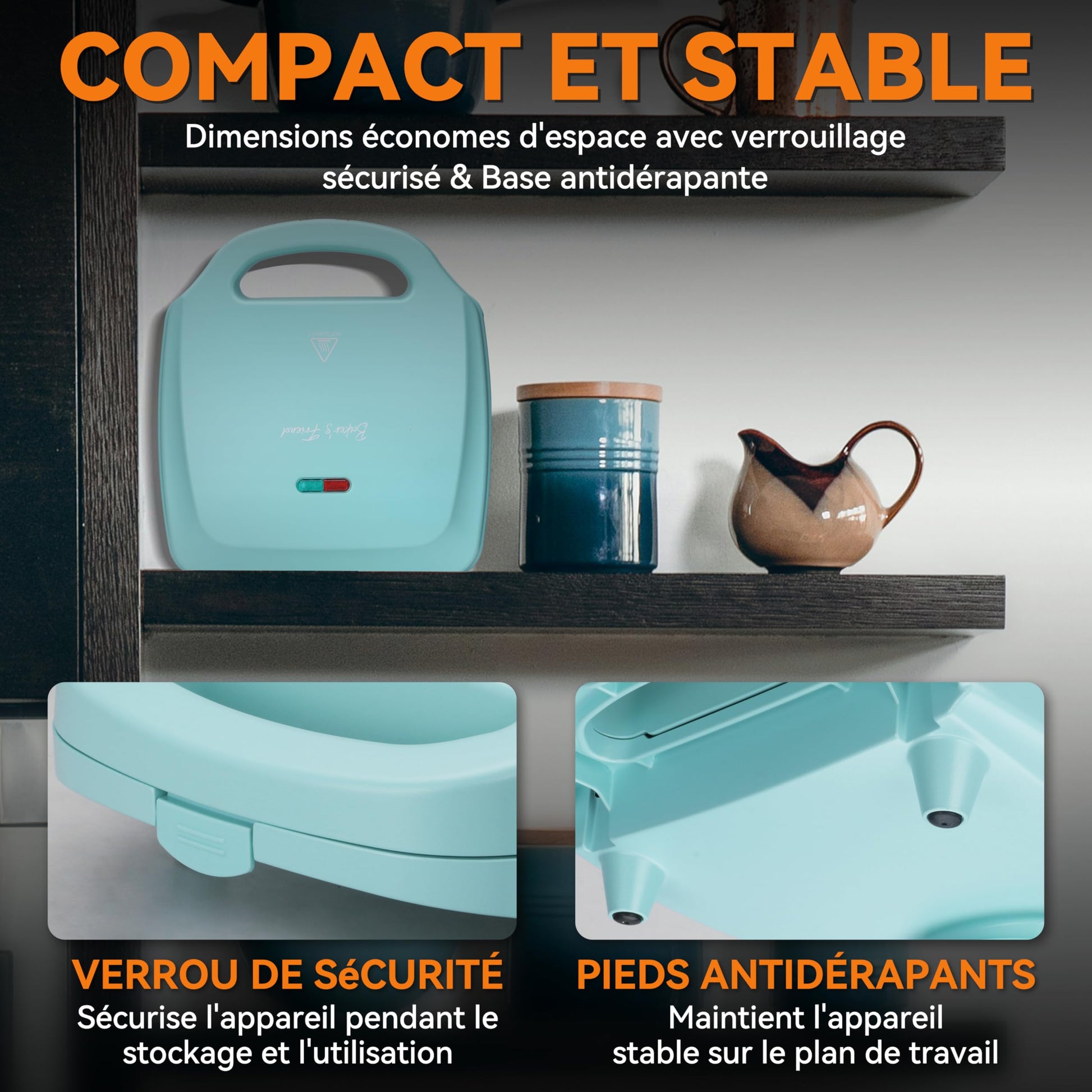 - [Design Compact et Portable] : Avec ses dimensions réduites, ce gaufrier mignon s’intègre parfaitement sur votre plan de travail ou dans un placard de cuisine, ce qui en fait un choix exceptionnel pour les petites cuisines ou les espaces restreints. Cet électroménager compact est parfait pour des espaces limités et peut être rangé facilement. Sa construction légère facilite le transport, que ce soit pour des occasions spéciales ou un usage quotidien. Les options comme ce gaufrier rond ajoutent une touche élégante et fonctionnelle à votre collection d'électroménager cuisine.