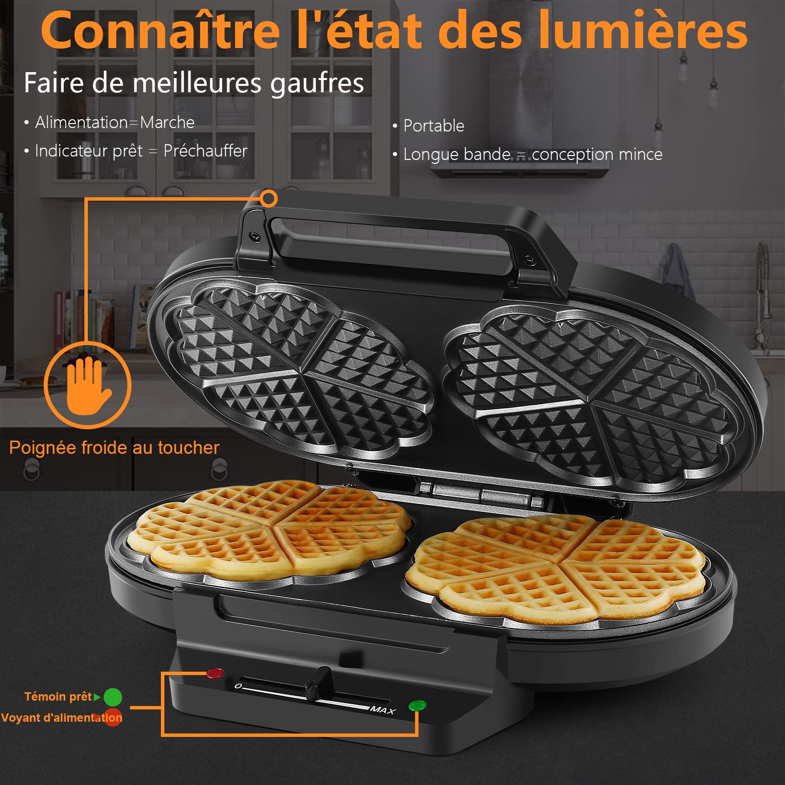 - Gauffrier à gaufres classiques en forme de cœur : Doté d'un design élégant et rétro, le gaufrier produit 10 gaufres classiques en forme de cœur à la fois. Parfait pour préparer des petits-déjeuners spéciaux ou des en-cas pour votre famille, notamment pour les anniversaires des enfants ou d'autres célébrations